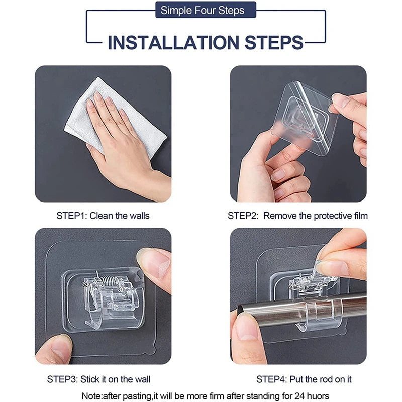 10 Self-Adhesive Curtain Rod Holders: Drill-free, adjustable hooks for easy installation