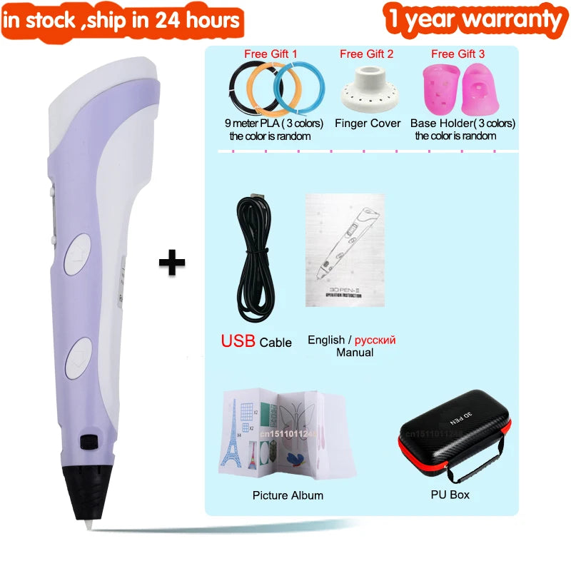 3D Pen for Children 3D Drawing Printing Pen with LCD Screen Compatible PLA Filament Toys for Kids Christmas Birthday Gift