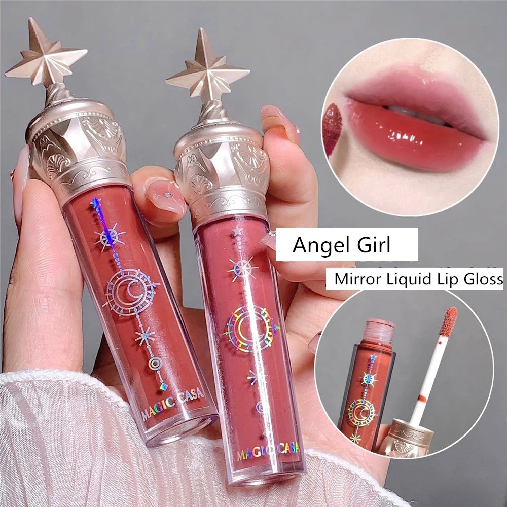 6 Colors Angel Girl Mirror Matte Liquid Lip Gloss Moisturizing Long Lasting Red Pink Lip Gloss Glaze Cute Makeup Product 1Pcs