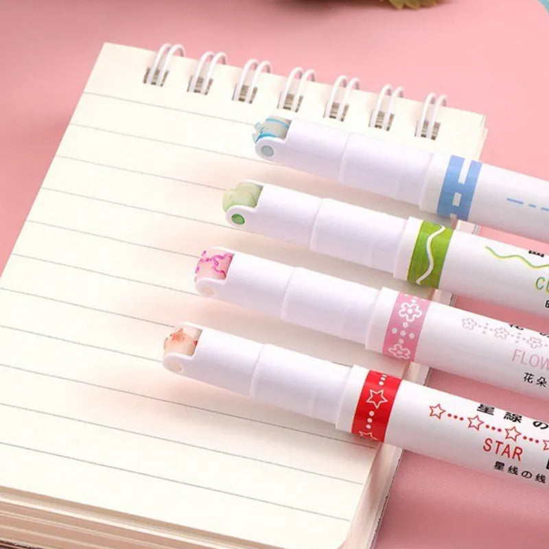 6-Piece Kawaii Flower-Shaped Highlighter Pen Set with Roller Tips for Writing, Journaling, and Drawing
