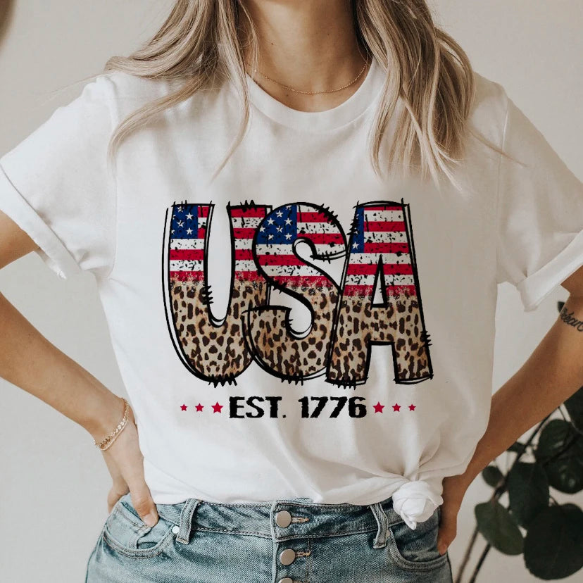 America T-Shirt Women Summer Loose Fashion Vintage 4th of July T Shirt Fourth of July Cute Graphic Tees Hippie Tshirts Retro