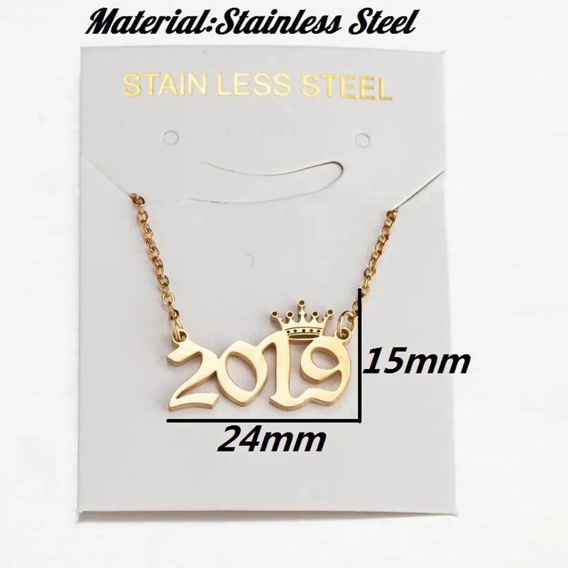 Fashion Gold Color Year Necklace for Women Charm Stainless Steel Crown Pendant Chain Choker Birthday Party Friends Jewelry Gift