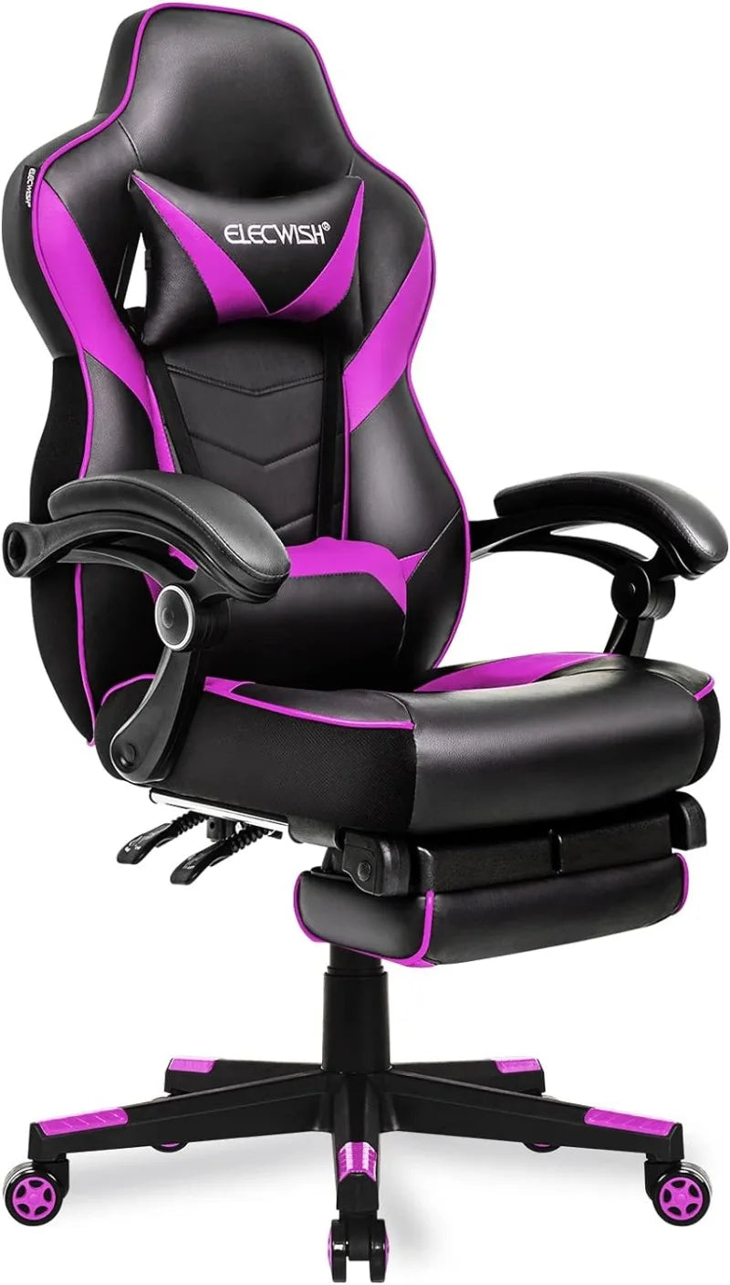 - Gaming Chair, Gamer Chair with Footrest, Ergonomic Racing Chair for Adults with Padding Armrests Leather, Computer Gaming Chair