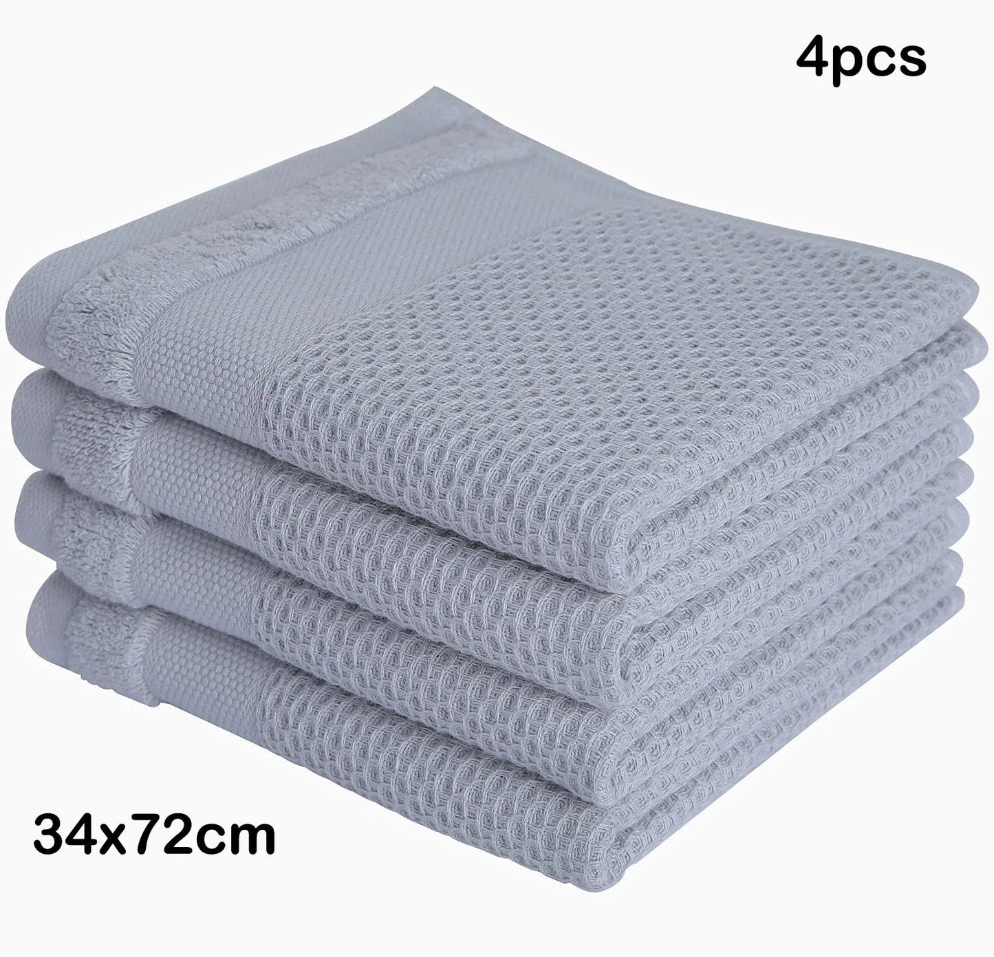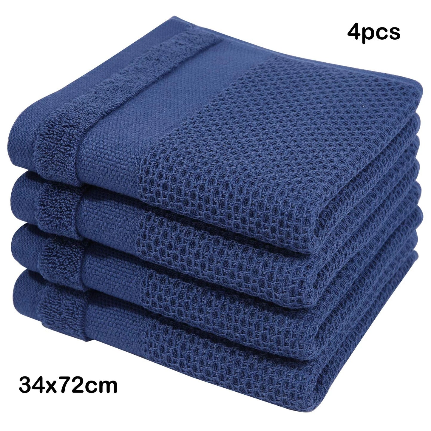 A pack of 4 cotton hand towels for kitchen ensures you’ll always have a fresh one handy when you need it, available in a variety of colors, size 16 x 26 inches, can perfect substitute sponges