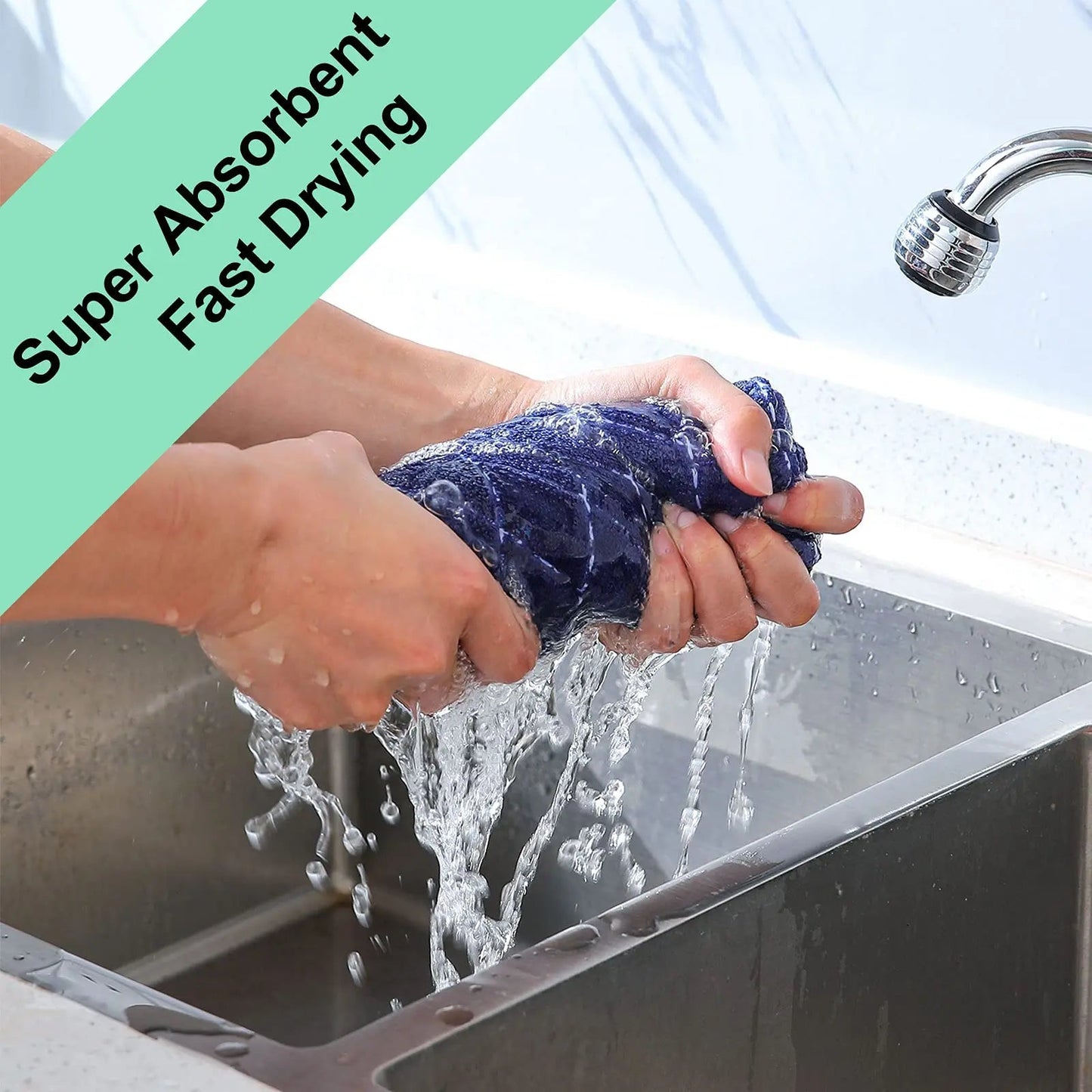 Designed with a unique weave terry construction, making them lightweight, super absorbent and dry quickly. Our kitchen towel set is lint-free while cleaning, great for achieving any household task。