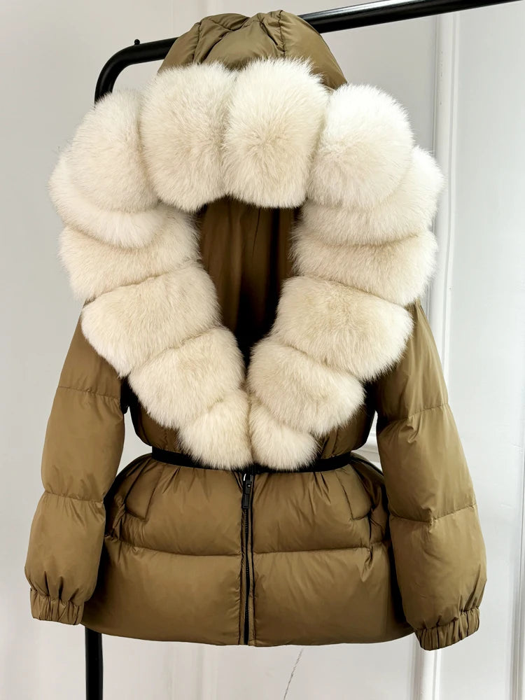 Janveny 2024 Winter Puffer Jacket Women Real Fox Fur Hooded Thick Warm 90% White Duck Down Coat Female Parkas Waterproof