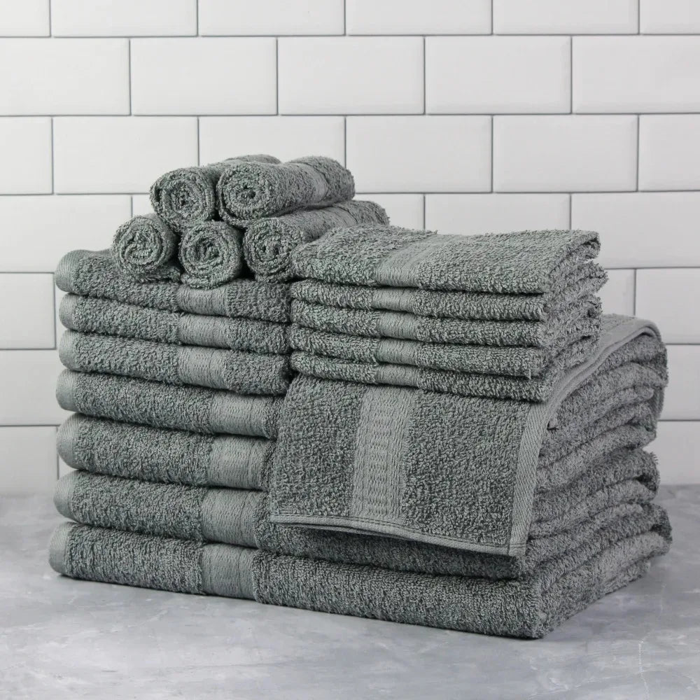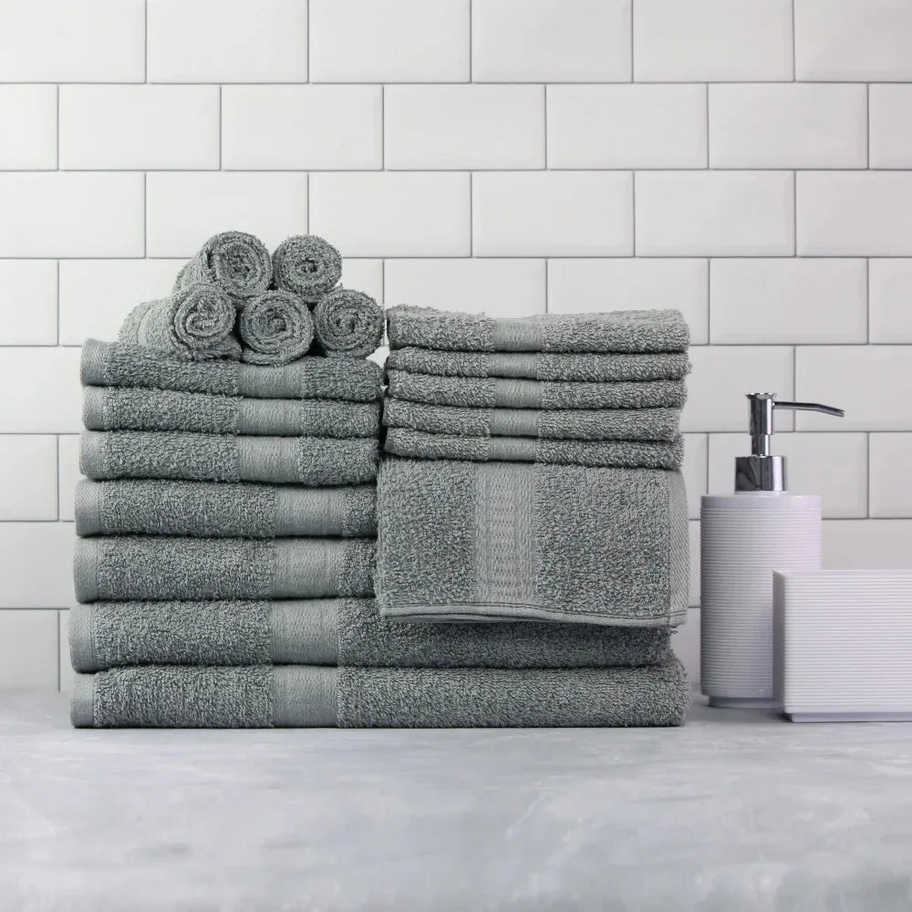 Mainstays Solid 18-Piece Bath Towel Set, School Grey bath towels face towel bath towel bath towels for adults