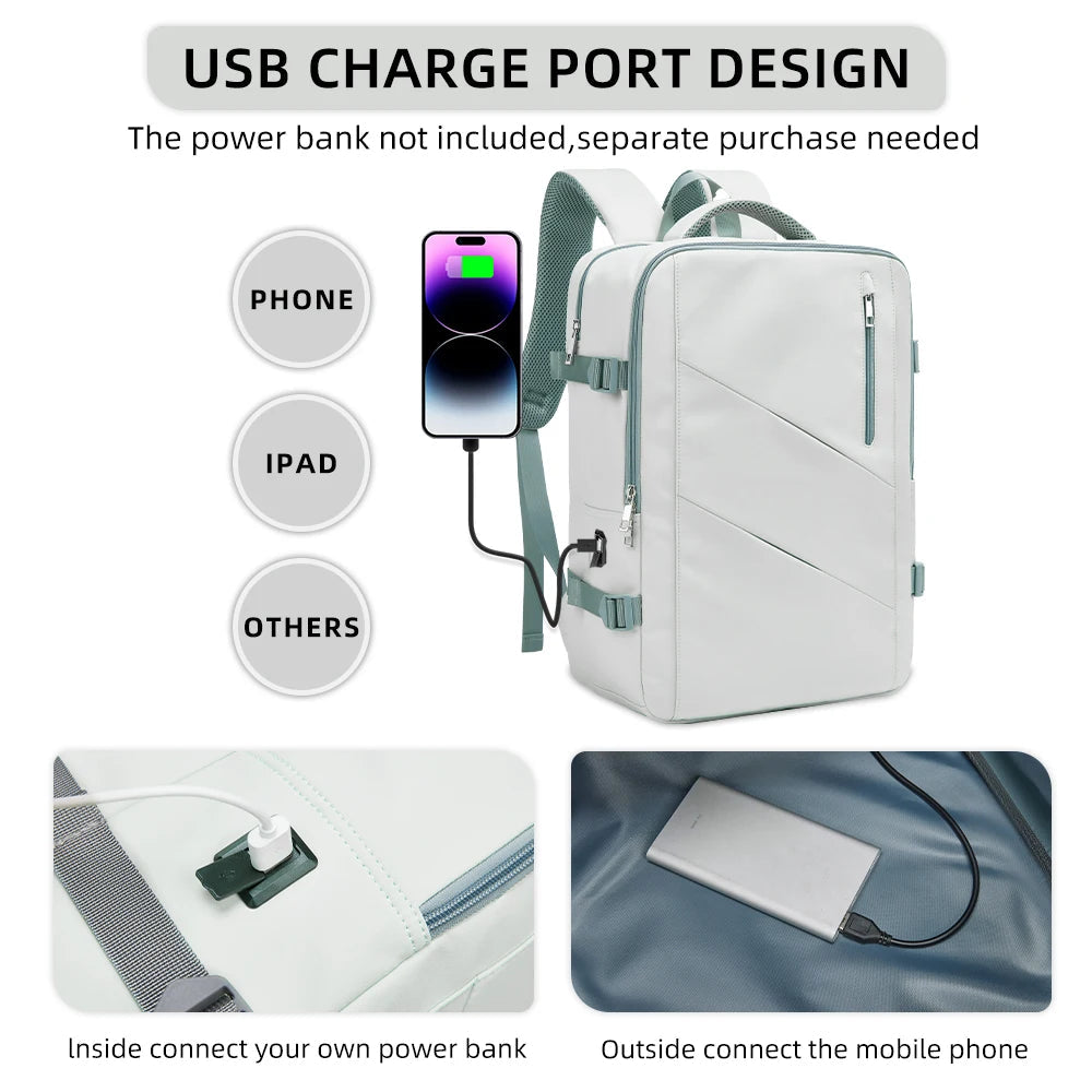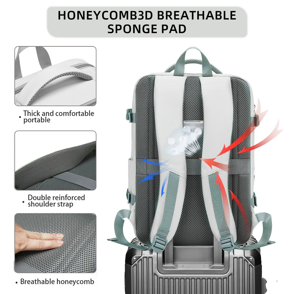 Women's Travel Backpack with Large Capacity, Multi-Function, Luggage Strap, USB Charging Port - Casual Bag for Notebook and More