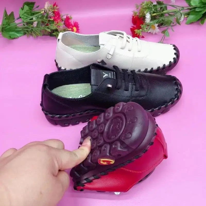Women's Sneakers Loafers Shoes for Women Platform Lace Up Pu Leather Flat Slip-On Sewing Comfort Casual Mom Shoe Mujer Zapatos